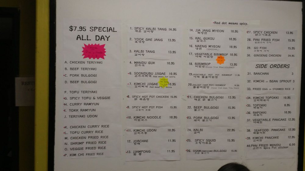 Introducing the menu at Korea House Restaurant, located in Eugene, OR. This family-owned establishment offers a variety of lunch specials, including Chicken Teriyaki and Beef Yakisoba, as well as all-day specials like Tofu Teriyaki and Curry Rice. Their house specials, such as Bi Bim Bop and Kal Bi BBQ short ribs, showcase the authentic flavors of Korean cuisine. Customers praise the delicious, home-cooked dishes and the warm hospitality of the owners. Dishes like beef Bulgogi and kimchi pancake are flavorful and well-prepared, though some feel portion sizes could be more generous for the price. Overall, Korea House Restaurant delivers a unique dining experience with fresh, authentic Korean dishes that will leave you wanting more.
